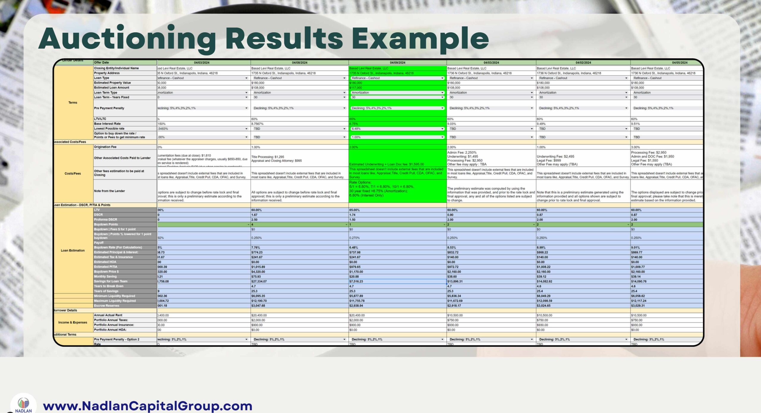 We are letting the top 3 banks know about the top 3 offers and let them fight over it performing a 2nd auction between the 3 top lenders by sending them the other offers and as well any external offers to compete on. Usually, the lender’s account manager will show these offers to his manager and will get a special exception to improve their offer - we didn’t have a single time that we couldn’t beat external offers using this system - it’s just like negotiating after inspection. Most of the time our offers will initially be better than any external offer. Every external offer needs to come on a company’s page with a logo.