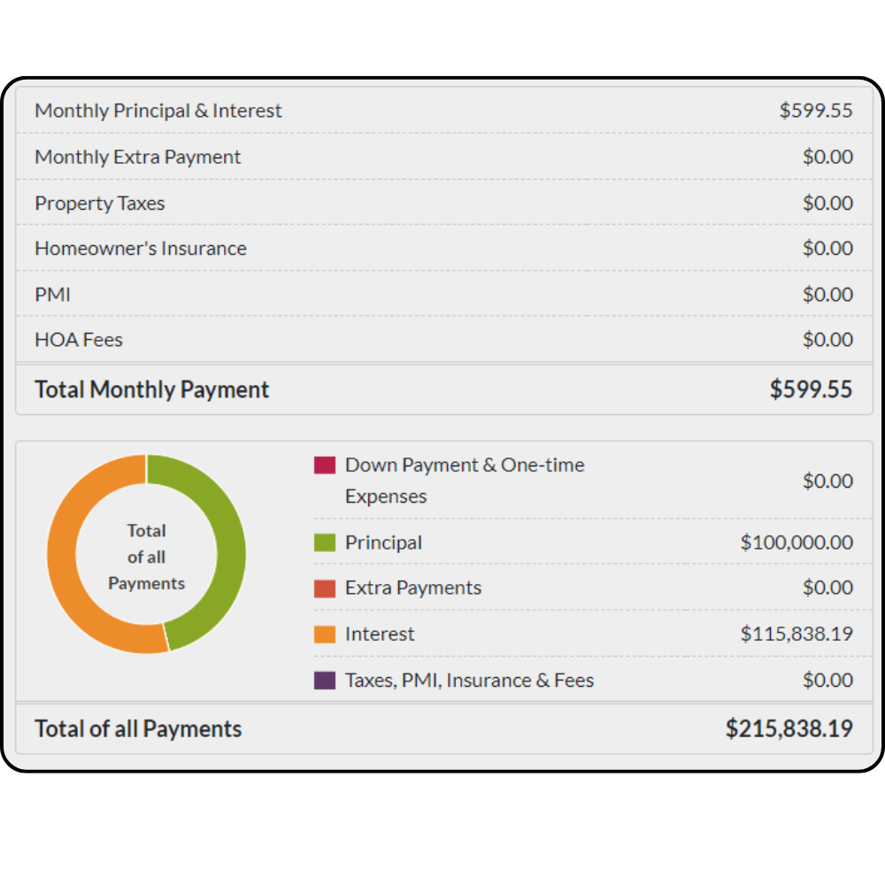 Principal + Interest Monthly Payment: $599.55