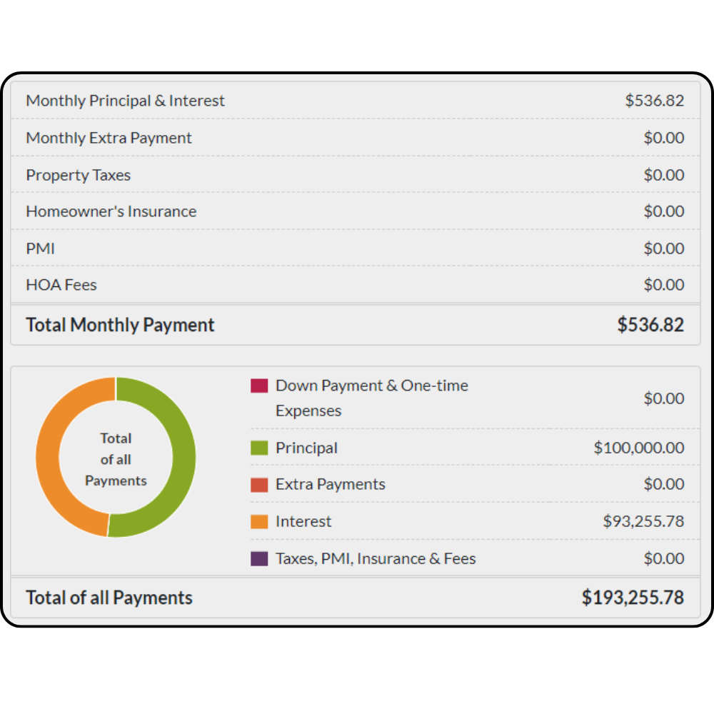 Principal + Interest Monthly Payment: $536.82